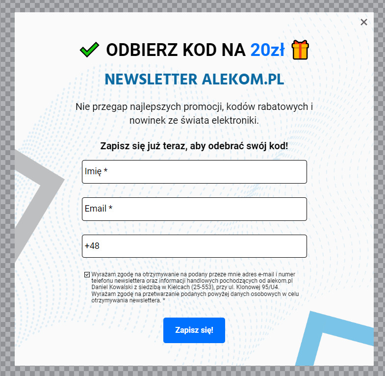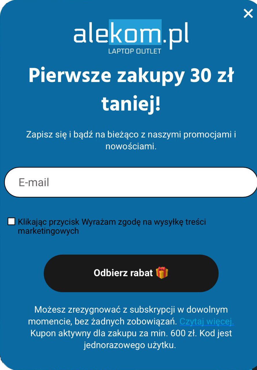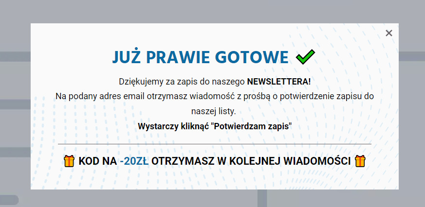 Utworzyłem specjalny pop-up do zbierania maili oraz skonfigurowałem auto-responder, aby klient po zapisaniu się na listę otrzymał maila powitalnego z kodem rabatowym.