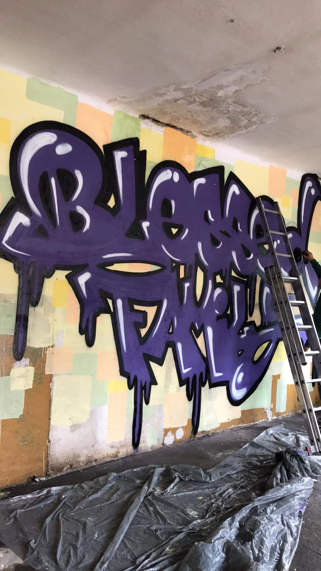 Miejsce wymagało remontu i właśnie taki przeprowadziliśmy. Czyszczenie posadzki, okien, skrobanie starej farby ze ścian i przygotowanie gruntu pod graffiti.